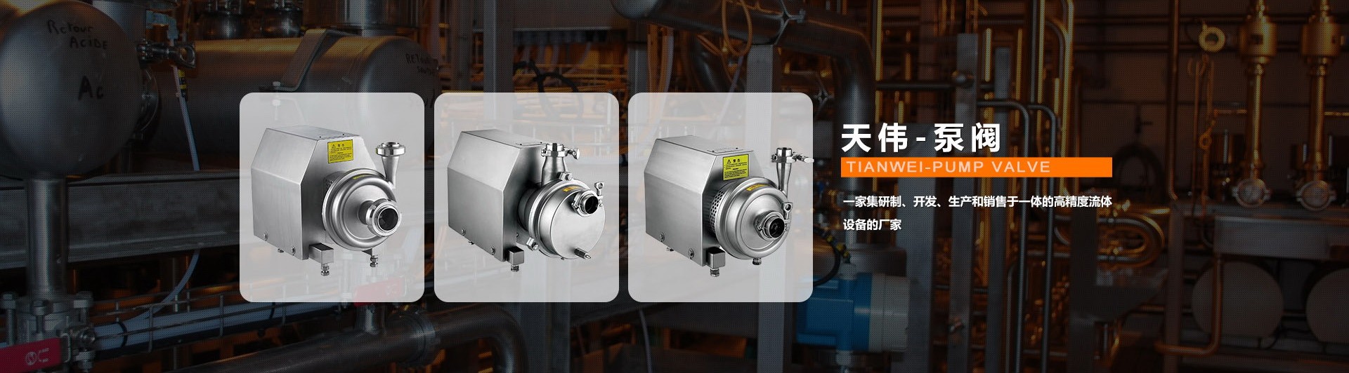 溫州天偉泵閥科技有限公司,毗鄰溫州萬噸碼頭,甬臺溫高速公路、溫州機場,地理位置優越,水陸交通暢捷,具有得天獨厚的發展優勢。是一家集研制、開發、生產和銷售于一體的高精度流體設備的廠家。 我司主要產品有:衛生級離心泵,自吸泵,CIP回程泵,防爆型離心泵,轉子泵,衛生閥門管件、管道鏈接件等產品。產品廣泛應用于食品、制藥、啤酒、乳制品、飲料、化妝品及精細化工等領域。產品均按客戶提供的技術參數及ISO、IDF、DIN 和3A等工業標準制造。各項技術均達到同行業領先水平,符合GMP藥典要求。公司堅信“用戶是我們產品...